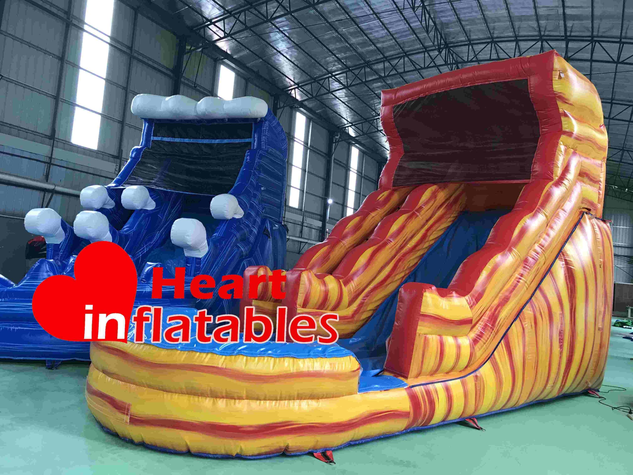 Water Slide Width: Normally, we will do it 3.3m width for 1 lane and 4.2m width for 2 lanes. As explain above for PVC material width, so 11ft/14ft width is the size we suggest. And this will make the water slide more steady.